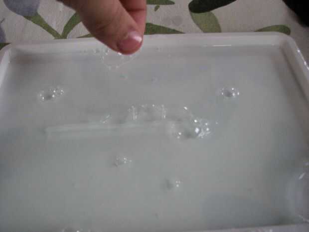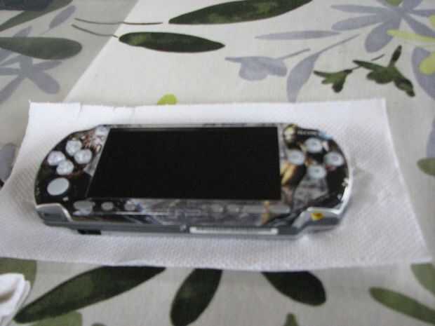 Ahora limpiar la pantalla de la PSP (frotar el jabón/agua de la mezcla fuera). Después de eso, tomar la protección fuera de la mezcla de agua y jabón. Deje que el jabón/agua mezclar la gota de la protección en algunas toallas de papel. Pero no frote la mezcla de la protección. Allí debe seguir siendo una película de jabón/agua para la protección.
