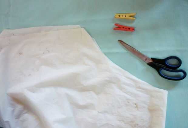 Doble la segunda mitad del mantel en la mitad y corte un poco de la inmersión (ver figura 1) para que se ajuste mejor a tu cuello.