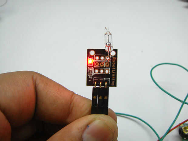 El interruptor de inclinación que estoy usando en este proyecto es un sensor de inclinación interruptor de mercurio. Su es una bombilla como estructura unida a la placa en la que se llena de mercurio. Dentro de la bombilla están presentes dos pequeñas barras de metal y una gota de mercurio. Mercurio que es líquido a temperatura ambiente (se mueve dentro de la bombilla ya que es un líquido) y un metal (por lo que conduce la electricidad) corta las barras de ambos, se activa el módulo. Por este mercurio que son capaces de detectar la inclinación. Conecte el vcc del módulo a linkit un 5V, gnd a gnd y Vout para pin digital 8.