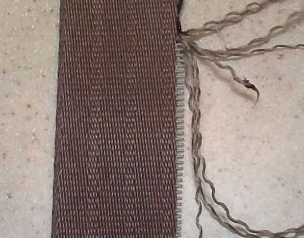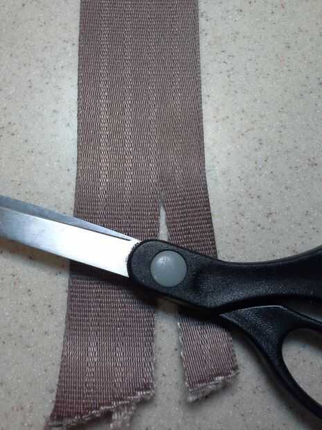 Sacar y recortar hilos de exceso hasta que esté cerca de donde termina el ancho de la tercera correa.