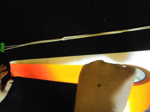 Extienden su cadena de goma. Que cinta adhesiva los extremos hasta una mesa o uno de los extremos del lazo en el respaldo de una silla.