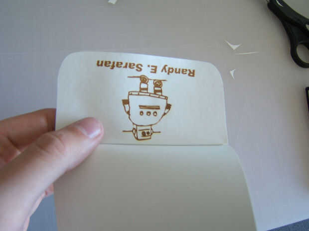 Recorte cualquier exceso de material que puede pegarse hacia fuera desde el lado de la caja.