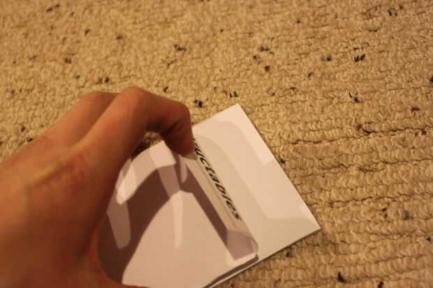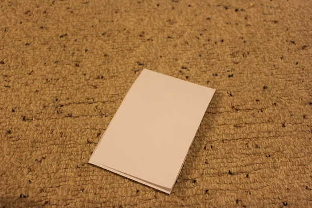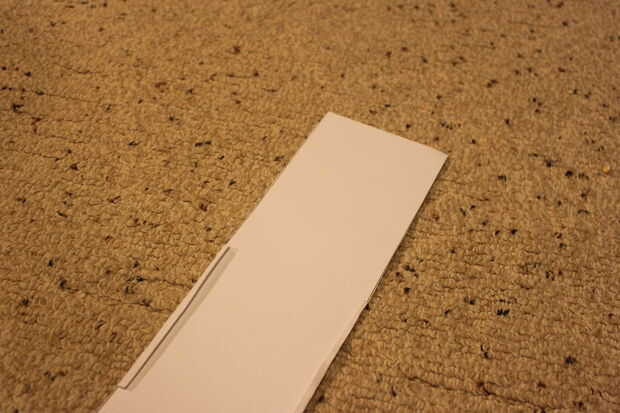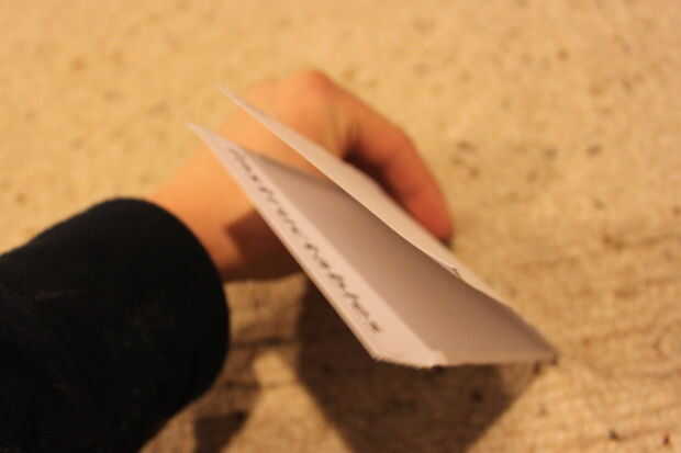 Ahora que se corta la plantilla, permite doblar! Asegúrese de que su logo o frase (si existe) es hacia arriba. En primer lugar, doble las lengüetas. Luego tomar el extremo largo y doblar hacia adelante hasta que quede a ras con las lengüetas. Voltee la plantilla. Doblar el extremo más pequeño hacia adelante hasta que quede a ras con las lengüetas. Siga los cuadros si usted necesita ayuda.
