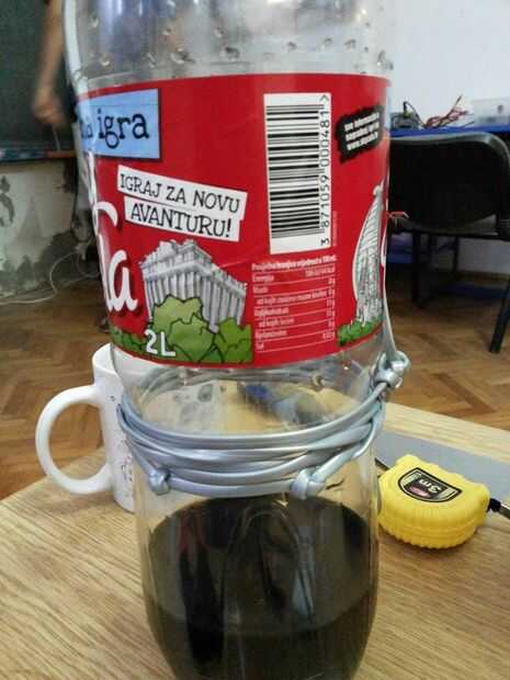En la primera versión habían atado a la botella con un alambre y la bebida era grande incluso después de una semana.