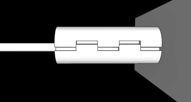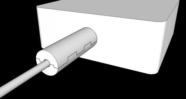 Esto es cómo el bosquejo terminado. El componente perfectamente encaja y permanece conectado en el cable.