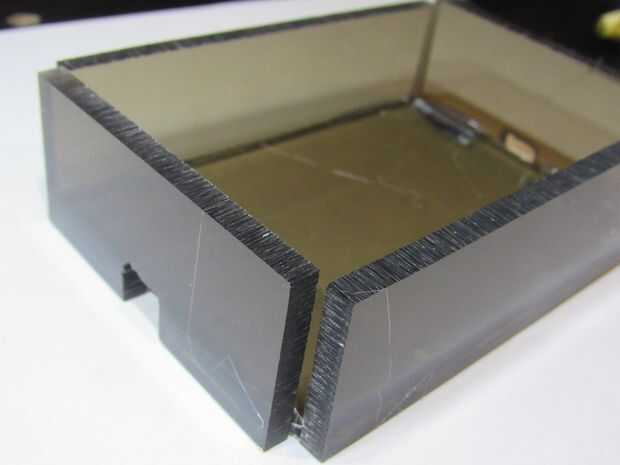 Tomar las piezas de acrílico que corte en el paso anterior y pegarlos juntos para formar una caja.