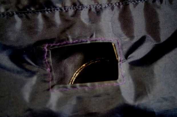 La bolsa necesita la ventana por lo que bien puede orientar la lente durante la instalación. Cortar la ventana rectangular en un lado de la bolsa. Dimensiones del rectángulo son ~ 3 "x 2" (7.6 x 6.3 cm). Ventana debe estar ubicada en la parte superior de la bolsa ~ 2"(5 cm) debajo de la línea de la cremallera. En las esquinas del rectángulo hacer cortes diagonales 0,5 cm. doble los lados del rectángulo interior y coser a lo. Ventana abertura terminado.