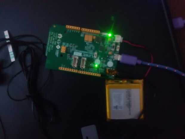 Coloque la batería con el LinkitONE... He adjuntado un auricular a LinkitONE para comprobar el sonido de la alarma, como sólo un prototipo... puede conectar altavoces a la misma