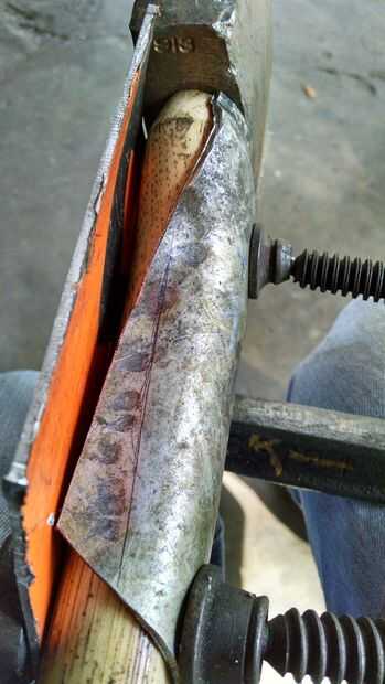 luego con abrazadera y martillado para que quepa.