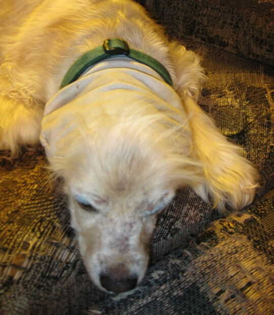 Me vino la idea de esto de una manga del cuerpo post-surgical que tuvo una vez, pero en el veterinario Ayer recibí muchos comentarios y elogios sobre él. El veterinario y el veterinario técnicos no habían visto nada igual, pero admiraron cómo útil y práctico es para este problema. Por lo tanto, les dejo lo aquí, con la esperanza de que tal vez podría ayudar a alguien que tiene un problema similar.