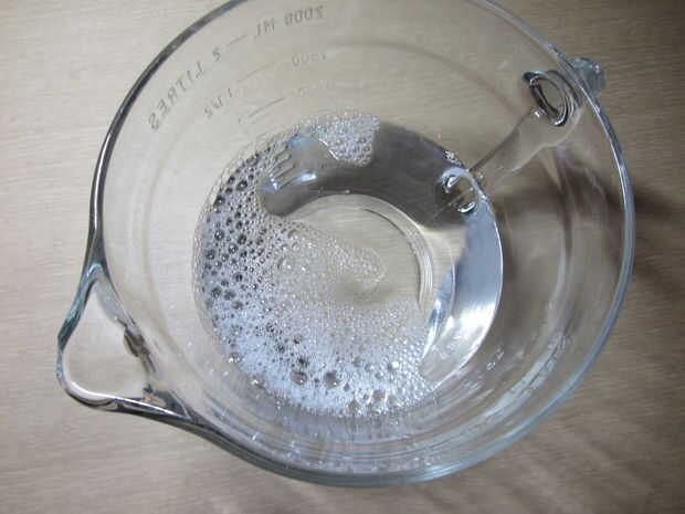 Sumerja el pedazo de cinta en el agua jabonosa durante 2-3 minutos.
