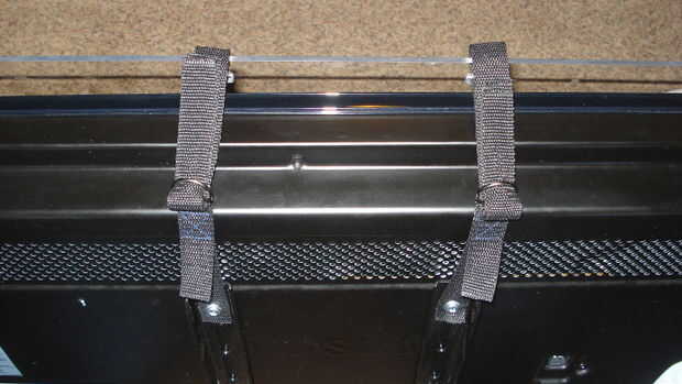 - Ambos extremos de la correa por medio de dos anillos en D del hilo de rosca.