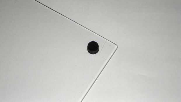 Puse a un espaciador en cada esquina, en media superior y en la mitad inferior. Te recomiendo poner un espaciador en cada ranura en la parte superior porque estos puntos llevan el peso del protector y necesitan apoyo adicional.