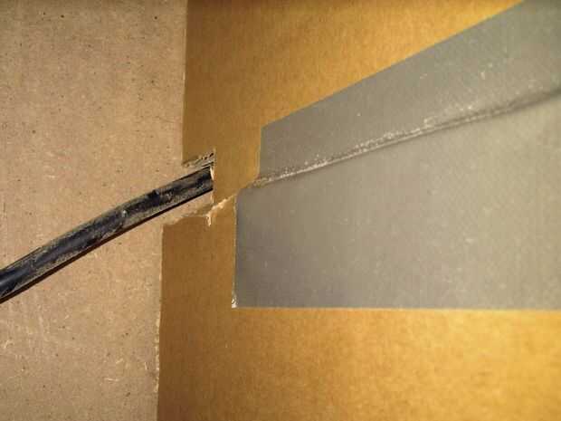 -Aún no terminado con ese pedazo-get la Flaca dos últimas tiras de lo mismo como antes con el gran bits-dibuje una línea por el centro y marcar con el cortador de la caja. Pegamento en los lados internos y externos de la pieza más grande y la pieza de 200mm que pegado en el paso anterior, asegurándose de que se queda en el ángulo de 45 grados. Estas cintas hacia abajo también.