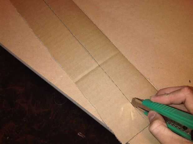 -Ahora haz uno o dos de las tiras más pequeñas que han cortado, dibujar una línea directamente abajo del centro y cuenta con la caja cortador hacer seguro que no va derecho a través, lo suficiente por lo que se puede doblar en el corte.