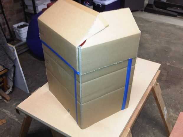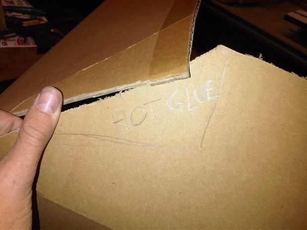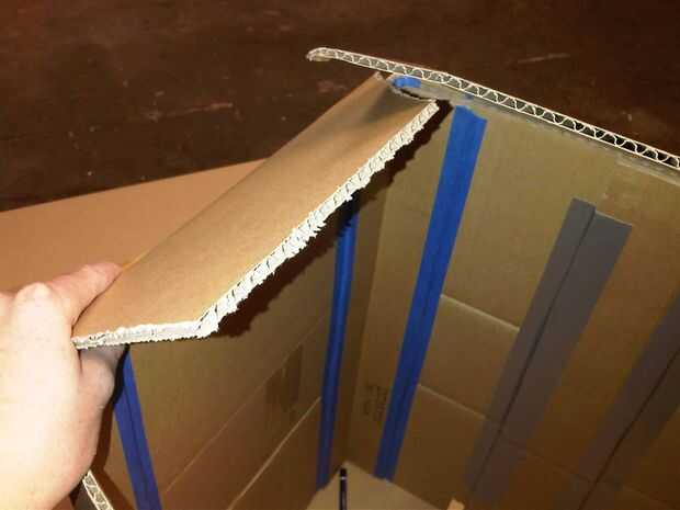 -Tomar las piezas de cartulina restantes, alinee los lados más grandes ya terminados (se puede cortar uno para una cubierta sobre el lado flaco si quieres, pero probablemente no será necesario) y dibuje una línea donde usted necesita cortar para llevarlos hasta el tamaño adecuado. Preferiblemente elige dos piezas con curvas, por lo que no necesitará hacer uno, ya que se necesitan para poder apretarse bien en la parte superior de los lados. Asegúrese de que corta lo suficientemente grande puede pegar bien a la espalda de los guardias de lado y doblar la parte superior bastante.