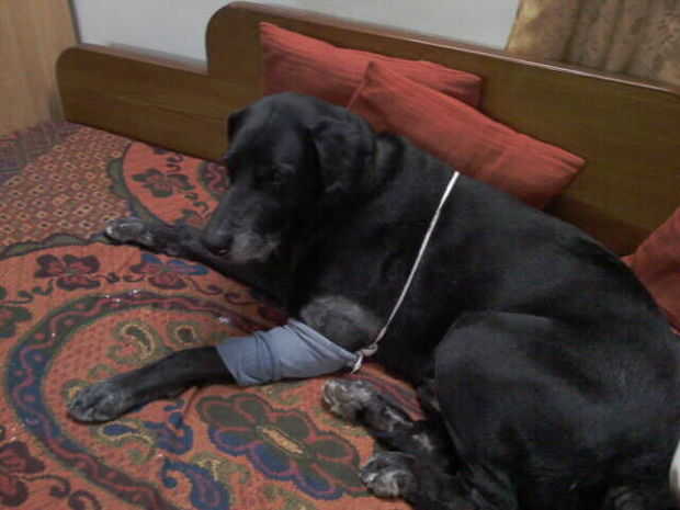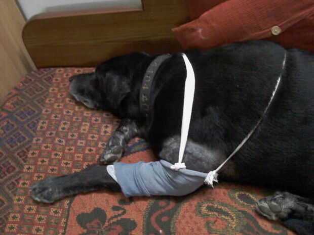 Finalmente el veterinario Dr.Hemant sugerido que trato de ponerse un calcetín o algo...