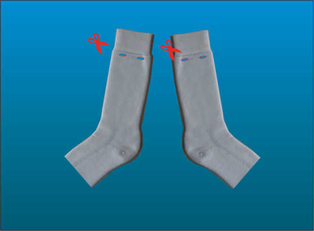 para ello corte 4 pequeños agujeros en el extremo abierto del calcetín... justo debajo de la zona de elstic...