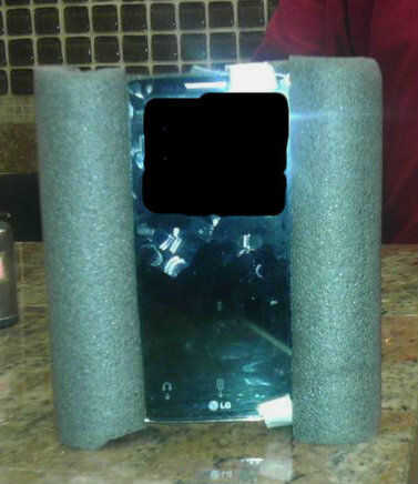 3. Utilice cinta adhesiva en la parte posterior para reforzar la fijación de la aislamiento de la pipa en la parte posterior del smartphone. Asegúrese de no cubrir la pantalla.
