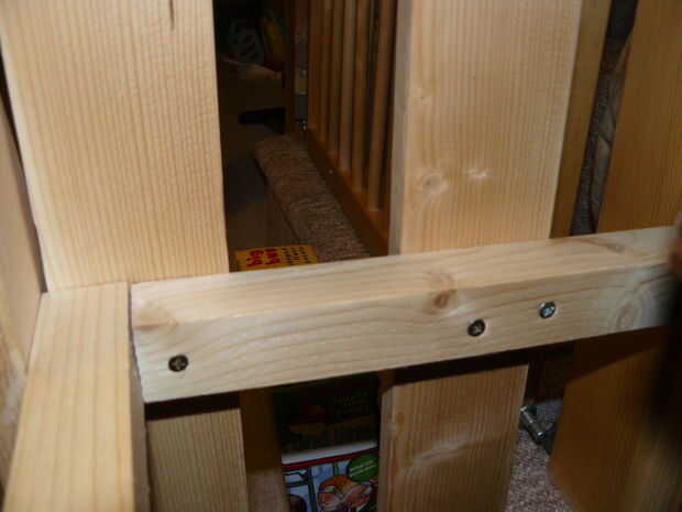 El marco una vez terminado fue fijado a la pared, a ambos lados de la unidad de TV con tornillos y tacos crudos (falta la foto lo siento).