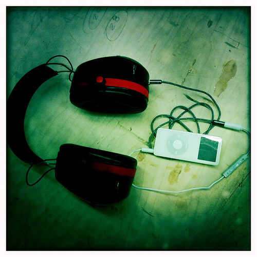 He estado usando mis auriculares hi-fi caseros durante una semana o así y mientras suenan grandes, realmente quería eliminar el cable que va desde los auriculares para el iPhone/iPod en el bolsillo del pantalón. Molesto se queda atrapado en las cosas alrededor de la tienda y podría ser potencialmente peligroso. que tiró en una máquina y todo eso. La solución que se me ocurrió fue conectar un iPod Shuffle a la parte trasera de una de las copas a través de un cable corto. El Shuffle es ridículamente pequeño y ligero y tiene un (francamente, impresionante) sistema de navegación de voz que vamos a ordenar a través de contenido de iPod muy eficazmente sin el uso de una pantalla. El resultado final es limpio, ligero y autónomo.
