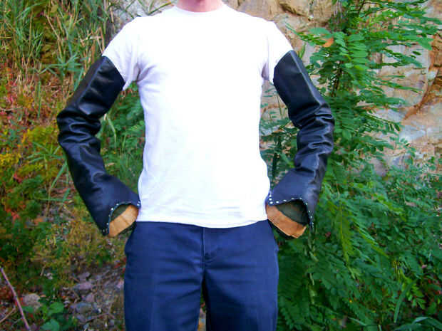 Camiseta temporada mis brazos rasguñados y cortar porque están expuestos a palos, cardos y espinas mientras trabajaba en la yarda y los bosques. Incluso cuando esté lo suficientemente frío como para llevar manga larga mis brazos todavía pinchó y apuñalado y mis mangas ser ripeadas. Necesitaba algo para proteger mis muñecas y brazos; algo así como un brazal pero más largo.