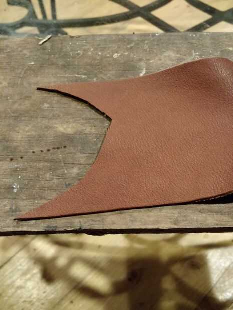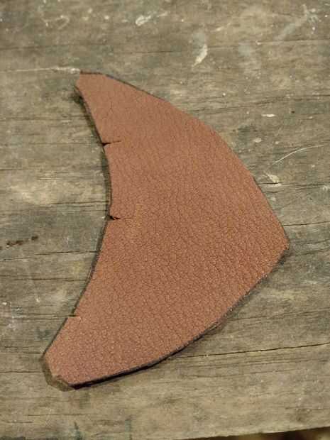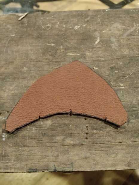 Compré un trozo de cuero curtido vegetal de mi tienda de artículos de artesanía local. Si ya tienes algún fino cuero flexible, estoy seguro que usted podría utilizar. Desea la piel fina y suave. Recuerde que va a estar tocando su cara. Al transferir su patrón de papel a la piel Asegúrese de añadir un margen para coser. Hemos grabado el patrón de papel a las gafas, pero será coser el cuero, por lo que es necesario añadir material para la costura. Entre 1/4 y 1/2 pulgadas deberían ser suficiente. Usé una pluma de tinta regular para trazar el patrón de papel sobre la piel. Si, como yo, usted será coser alrededor de una curva, usted tendrá que cortar algunos gajos en el borde de tu piel como se muestra en las fotos. Esto permitirá que el cuero envolver suavemente alrededor de la curva sin agrupar o superpuestos. Su piel debe ser lo suficientemente delgada como para que usted puede cortar con tijeras de buena calidad. Asegúrese de hacer una «izquierda» y un escudo de "derecho". Dado que el cuero tiene un lado "bueno" y un lado "malo" tiene que revertir su patrón para asegurarse de que el lado "bueno" es en el exterior a la izquierda y la derecha.