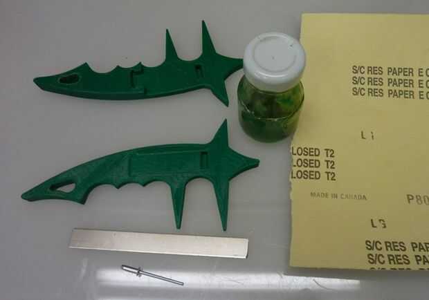 Si imprime esto en ABS, usted también tendrá una mezcla de ABS y acetona para soldar las piezas juntas. Si imprime con el nilón, la mejor manera para unir las piezas mecánicamente, utilizando tornillos de chapa.