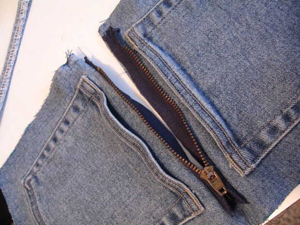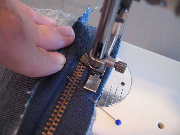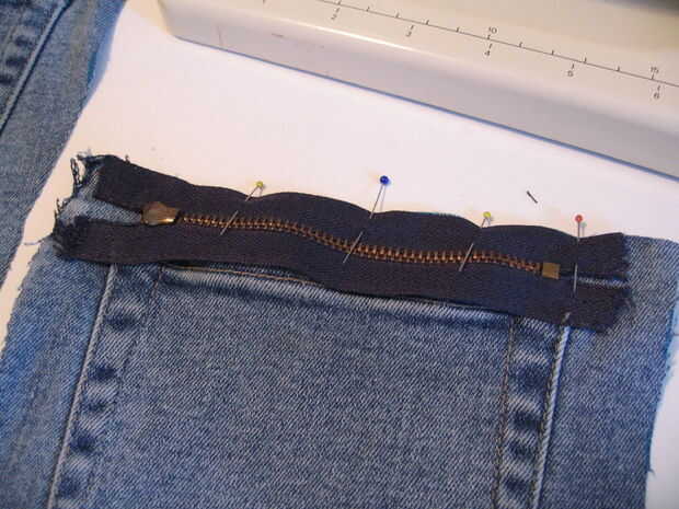Ahora pin y coser la cremallera para el bolsillo de otros de la misma manera, con la ficha de la cremallera hacia abajo contra el otro bolsillo. Los bolsillos serán derecha juntos como le pin y coser.