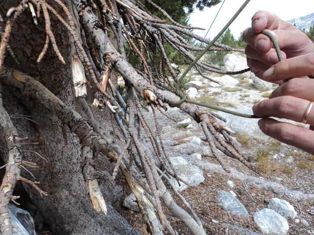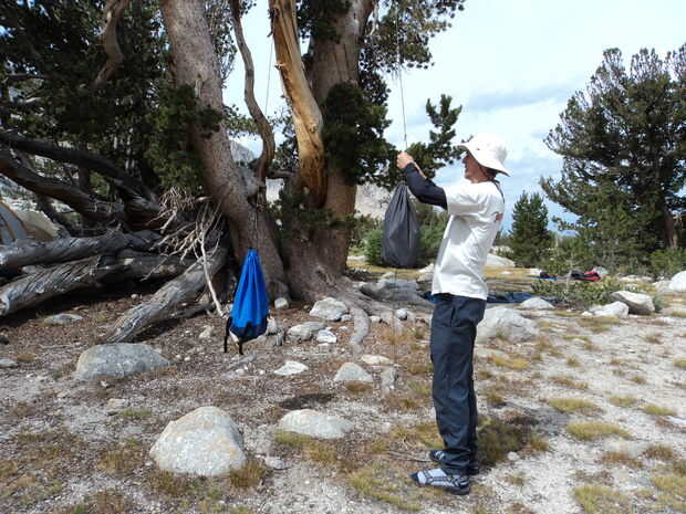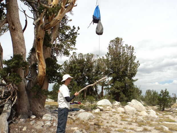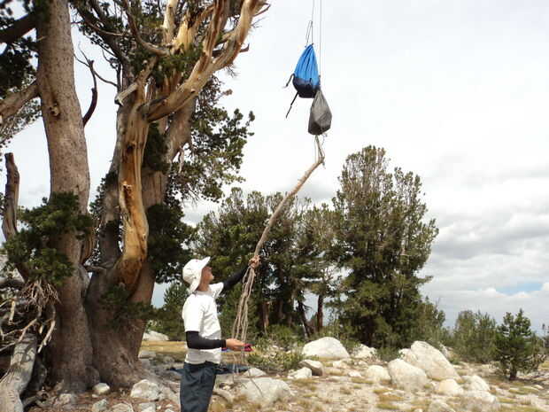 Para conseguir su caída oso abajo, uso un largo palo al tirón de las bobinas de paracord flojo. Tire hacia abajo la bolsa más ligera y Desatadlo luego baje con cuidado la bolsa más pesada. Para mantener el paracord enrede mientras tenga las bolsas de comida, atar apagado en ramas inferiores independientes que se pueden llegar fácilmente, o para algo más que mantener apretados entonces usted puede fácilmente volver a colgar su comida!