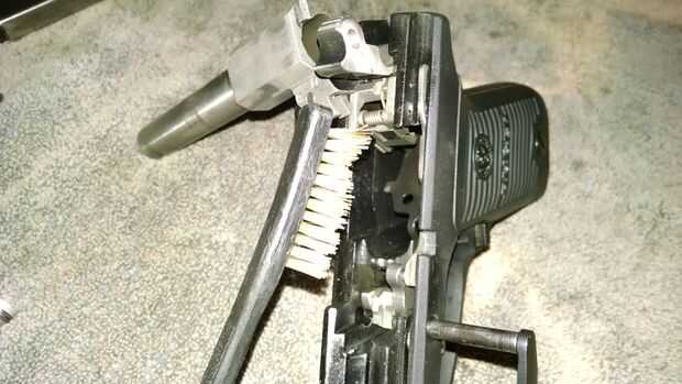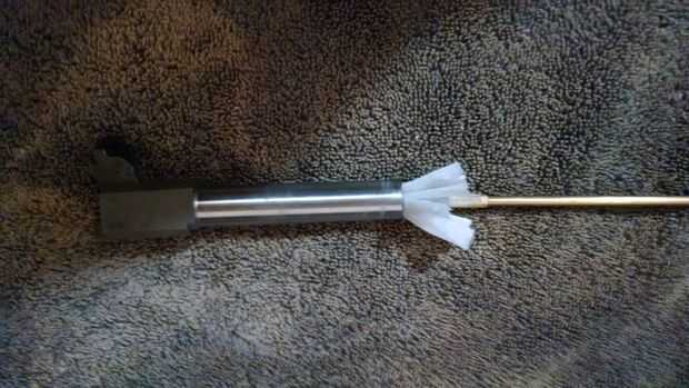 Con pistola limpiadora esponja, limpie el interior del barril... utilizar cepillo de alambre. esponja otra vez entonces limpiar con trapo de algodón seco.