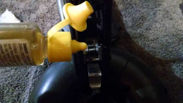 algunos dicen algunos dicen aceite de grasa... Me gusta con aceite de... aceite de todas las partes móviles. Limpie el exceso de aceite...