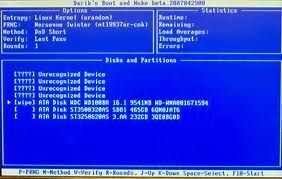 Una vez que escoges qué algoritmo utilizar Seleccione con la barra espaciadora. El programa te llevará a la pantalla de selección de unidad anterior, si usted se siente realmente ambicioso que puede presionar 'r' que le permitirá seleccionar cuantas rondas para hacer. ATENCIÓN el alto número de asaltos podrá convertir fácilmente en un tiempo muy largo. para este instructable he recogido 2 rondas. Esto va a tomar un estimado 25 horas para completar en mi disco duro de 465 Gb. Como dije, si usted necesita el alto nivel de seguridad esté preparado para esperar un tiempo.