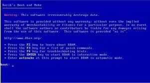 Una vez que arranque DBAN correctamente se le presentará con una pantalla mucho como el de la foto. Hay algunas claves para obtener información sobre el programa y no dude en hacerlo, después de todo el conocimiento es poder. Los comandos del dos la parte inferior son los que nos preocupa. Si entras en el modo de autonuke el proceso se simplifica y el programa hace el trabajo, sin embargo si sólo presiona entrar, obtener opciones más avanzadas un poco que es lo que se cubren aquí.