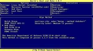 Cuando una computadora almacena datos en las unidades, se almacenan en binario, o una serie de '1' y ' 0. así por ejemplo puede tener un bloque de datos que se parece este '10100111011001100'. lo que hace este programa es esencialmente cubre estas cadenas con los 0s. Un formato tradicional sólo cubre una vez y es susceptible a la recuperación de datos mediante herramientas de recuperación de la calidad personal o profesional disponibles en internet. Sin embargo, DBAN usa varios pases que cubren todos 0s nuevamente con datos aleatorios y luego otra vez con 0s más. Al final el más veces estos pases se hacen, más improbable la posibilidad de recuperación de datos. Así, para este instructable le escojo DoD 5220.22-M. Este es un nivel de seguridad medio en 7 pasos. Sin embargo, si usted cree que los datos en su computadora están peligrosa para la vida, dude en escoger Gutmann Wipe que es una friolera de 35 pases. Pero recuerda que los pases más realizaron, el tiempo más largo. El tamaño de la unidad se limpió también determina la duración del procedimiento.