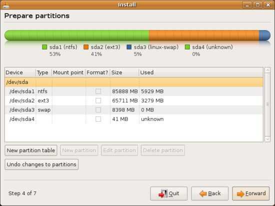 Así, primero inserte el medio de instalación de Ubuntu y arrancan de la misma manera que el último 2 veces. Se le presentará con una opción para 'Probar' (ejecutar como un live CD) o ' instalar '. Vamos a elegir el último. Primera pregunta para cosas básicas como el idioma, y si quieres instalar actualizaciones durante la instalación de su. Sea compatibilidad no va a utilizar esta característica. Sin embargo estaré usando la opción de instalar los plugins de partido 3. A continuación vendrán las cosas avanzadas. Esto es donde usted tendrá que empezar a repartir. Debe llegar a una pantalla detecta una instalación de Windows 7 y quiero saber si gustaría instalar junto a ella. Generalmente esta es una buena opción, sin embargo, Linux ha sido meticuloso sobre particiones en el pasado para mí, así que haga clic en 'algo más' y designar mis particiones. Estas son las particiones que implementará: