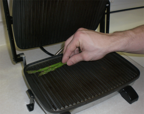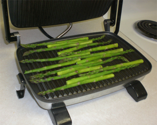 Después de marinado la parrilla debe ser correctamente calentada. Empezar colocando cada extremo de la lanza hacia afuera de la parrilla. Luego colocarás la parrilla hacia abajo en los espárragos de 2 a 3 minutos y compruebe los espárragos y mover los espárragos ligeramente para guardar de la quema. Reaplique la parrilla superior y se mantiene durante poco más de un minuto. Directamente poner los espárragos cocidos en el plato para servir a las proporciones deseadas.