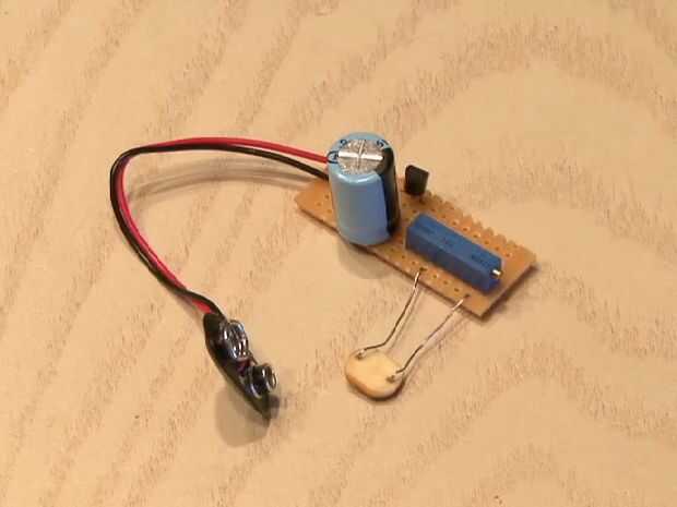 Instalar la placa de circuito y la batería de 9v en el cuadro de manía. Alinee la fotocélula en el agujero y pegamento caliente todo en su lugar. Además, conecte la sirena y ejecute el cableado dentro de la caja. Terminar las conexiones de soldadura con la sirena.