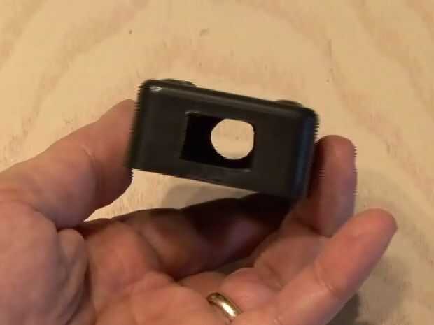 Corte 3 agujeros en el segundo cuadro de manía. Uno para el interruptor, uno para el alojamiento de láser y uno pequeño para los cables del adaptador de CA. Pase los cables desde el adaptador de CA en el cuadro. Instale el swicth y pegamento caliente el láser en el lugar. Cable positivo final del adaptador de CA al cable rojo del láser y los negativos extremos de los alambres el láser y el adaptador para el interruptor.