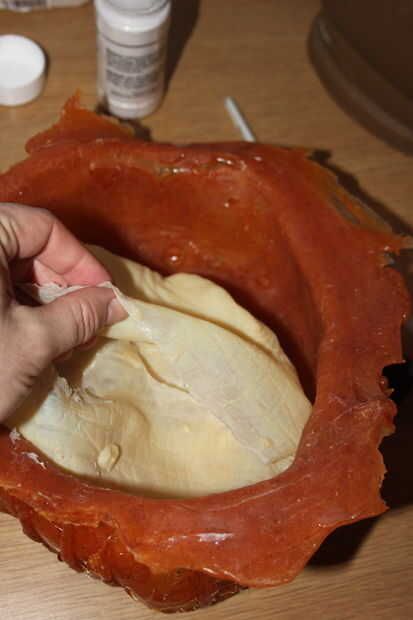 - Uso que dedo para ejecutar todo el látex exterior capas para crear un borde fino y quitar los bolsillos profundos de látex.
