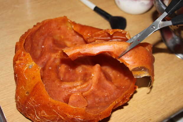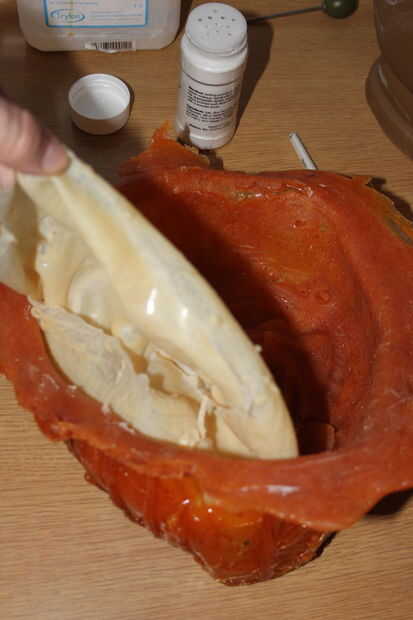 Lentamente pelar hacia fuera su prótesis de látex y aplicar talco o polvo, establece como ir con un cepillo de cerdas suaves maquillaje para evitar que se pegue a sí mismo.