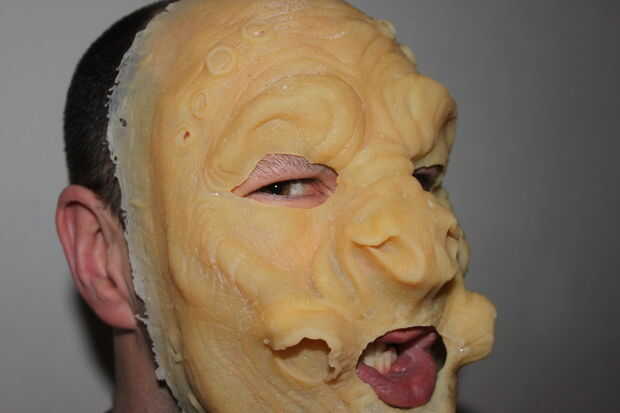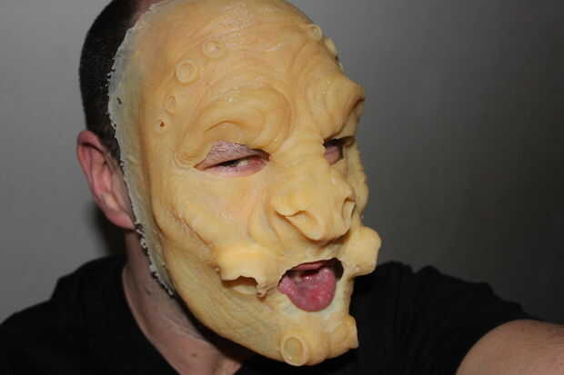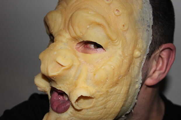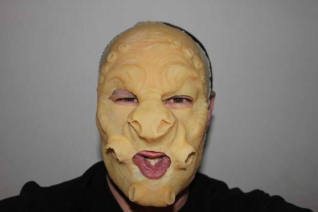Como máscara de látex no se hace de látex de espuma o espuma de gelatina y no se ha hecho para caber exactamente mediante la creación de una cara del molde y luego va a ser un poco flojo, pero como se puede ver en las fotos resulta muy eficaz y es de muy bajo costo.