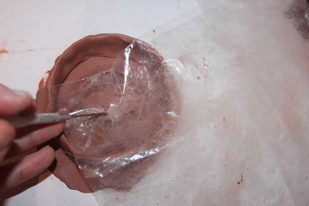 La mayoría del refinamiento para agregar textura se realiza por raspado, meter o anotar la arcilla con una pieza de plástico como una bolsa transparente en la parte superior para evitar las marcas de la herramienta es demasiado obvio. He hecho la mayor parte de mis propias herramientas para satisfacer mis propias técnicas de refinación.