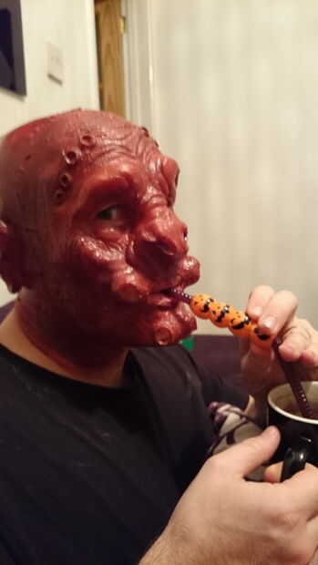 Aplicar una capa de mezcla de pintura flexible a la mascarilla, pero tenga cuidado de no para rellenar el buen trabajo que has hecho durante la arcilla etapa de refinación.