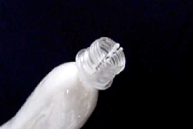 4. hacer un corte a través de la parte roscada de la botella.