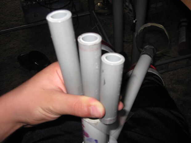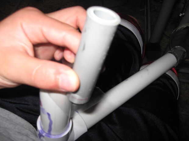 Primero tomar las sobras de los 2 litros de la botella y cortan un trozo es tan amplia y tan alto como su zapato cuando el techo del PVC de 1 pulgada. A continuación corte las tres piezas de PVC la longitud de desde el final de la 1 pulgada PVC hasta el extremo de la zapata. Desde curva de zapatos, estas tres piezas que varían en tamaño y probablemente se verá como en cuadro 2. Tome los pedazos y pegarlos de la manera que las curvas de su zapato. Por ejemplo, si hacer una pierna para su lado izquierdo el pedazo más pequeño se debe a la izquierda y viceversa. Recuerde que mirar y comparar las piezas a su zapato para asegurarse de que están en el orden correcto antes de pegarlas.