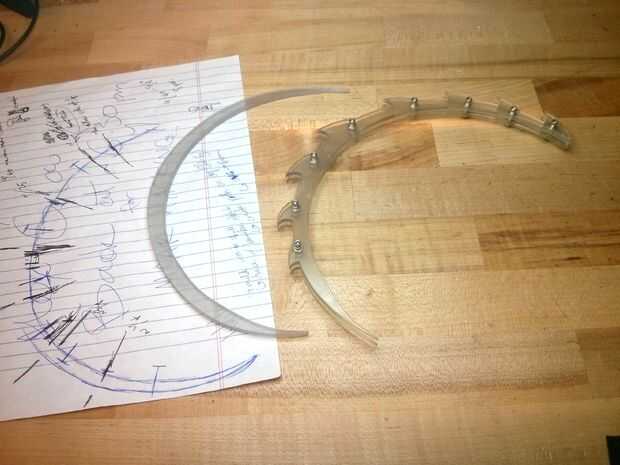 Esta es la parte más divertida (y frustrante)! Hice más iteraciones con un canal para la línea de pesca, con dos lados que perno juntos una vez que la línea estaba en el lugar. He utilizado tuercas de rosca de nylon, que permanecer en el lugar hasta que están desatornillados, mientras que fácilmente pueden aflojarse las tuercas regulares.