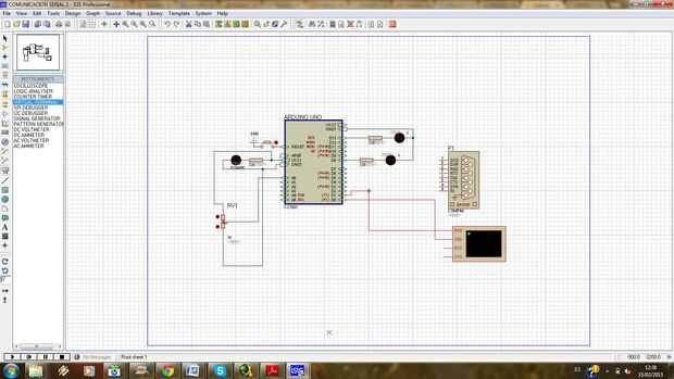 Simulamos el circuito y desde el Hiperterminal podemos enviar datos al arduino o si tenemos un sensor en el arduino mandárselos al programa.