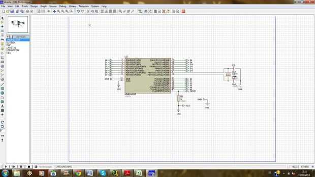 Ahora que ya tienes tu placa de Arduino ponle todos los componentes quieras buscando por las librerías de Proteus (si nunca se a usado este programa te recomiendo abre un manual por la red). Una vez puestos nuestros componentes, pasaremos a programar nuestro arduino.