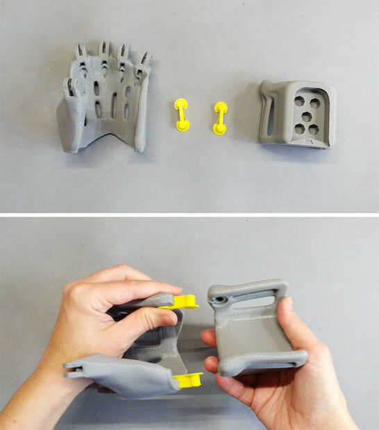 La pieza de Unión debe ser flexible. A esta pieza utiliza filamentos flexibles "filaflex" Tengo también la impresión utiliza filamento flexible así proporciona mejor agarre de objetos, aunque en este caso es opcional.